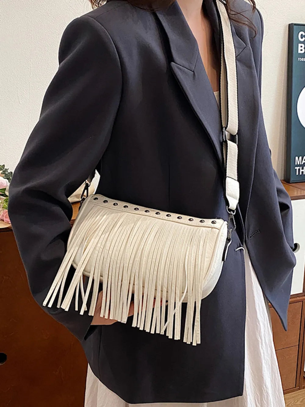 PU Leather Fringe Studded Crossbody Bag