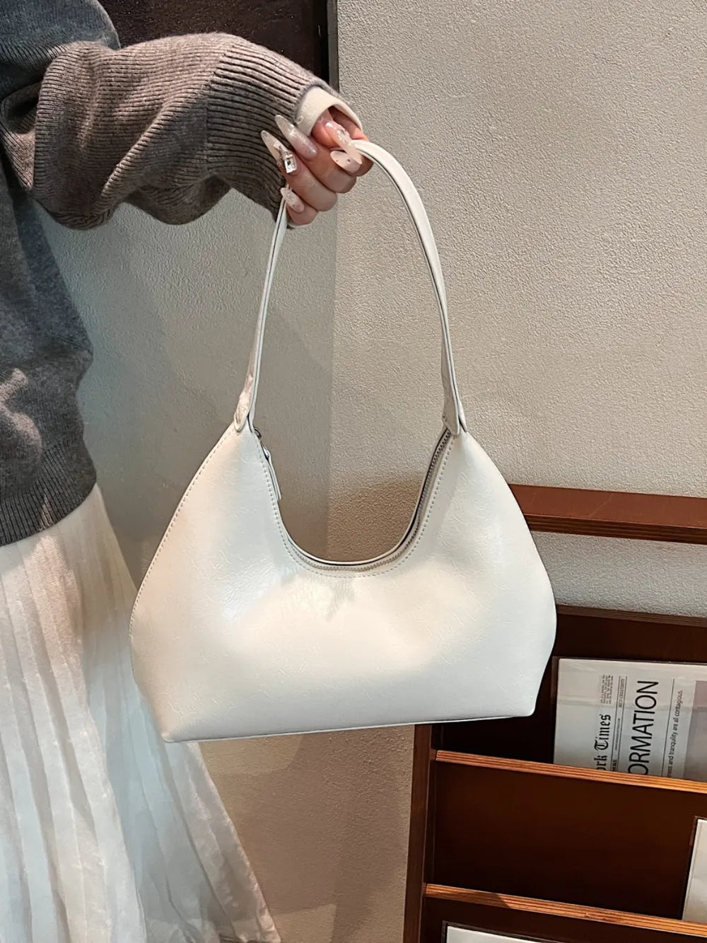 PU Leather Shoulder Bag with Zip
