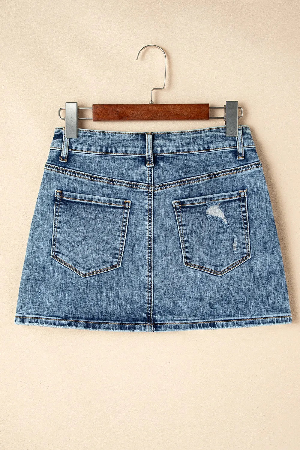 Home/All/Rhinestone Distressed Denim Mini Skirt
