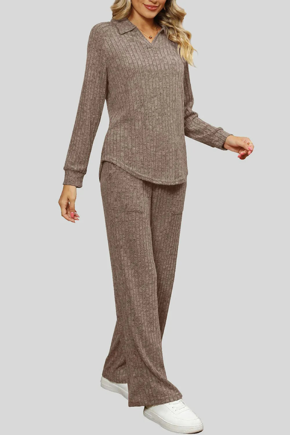 Home/All/Ribbed Long Sleeve Top and Pocketed Pants Set