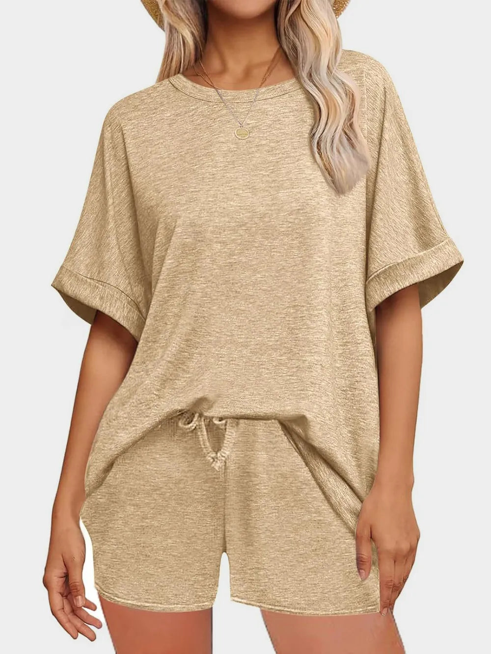 Home/All/Round Neck T-Shirt and Drawstring Shorts Set