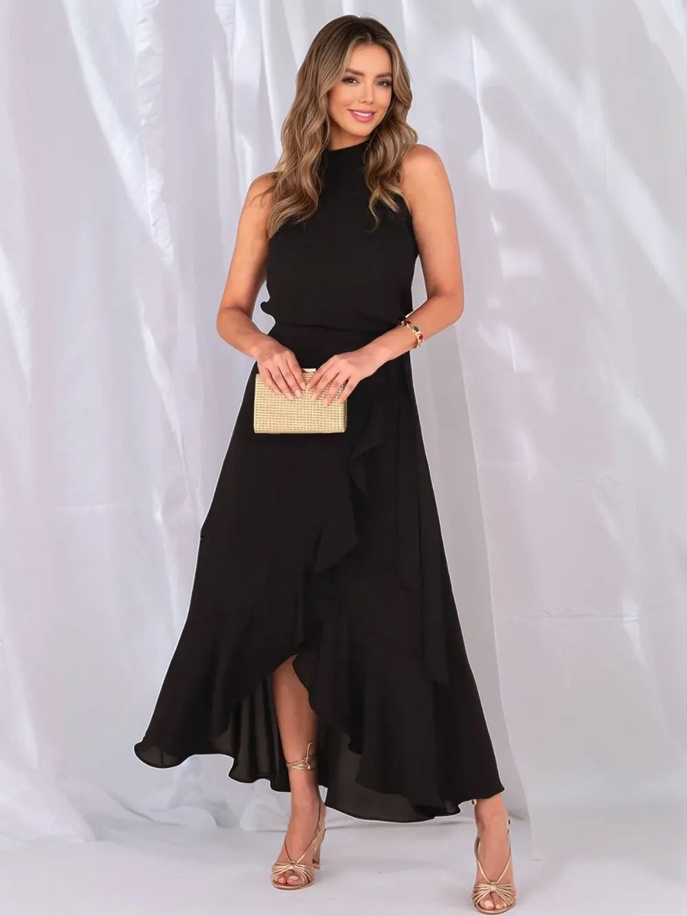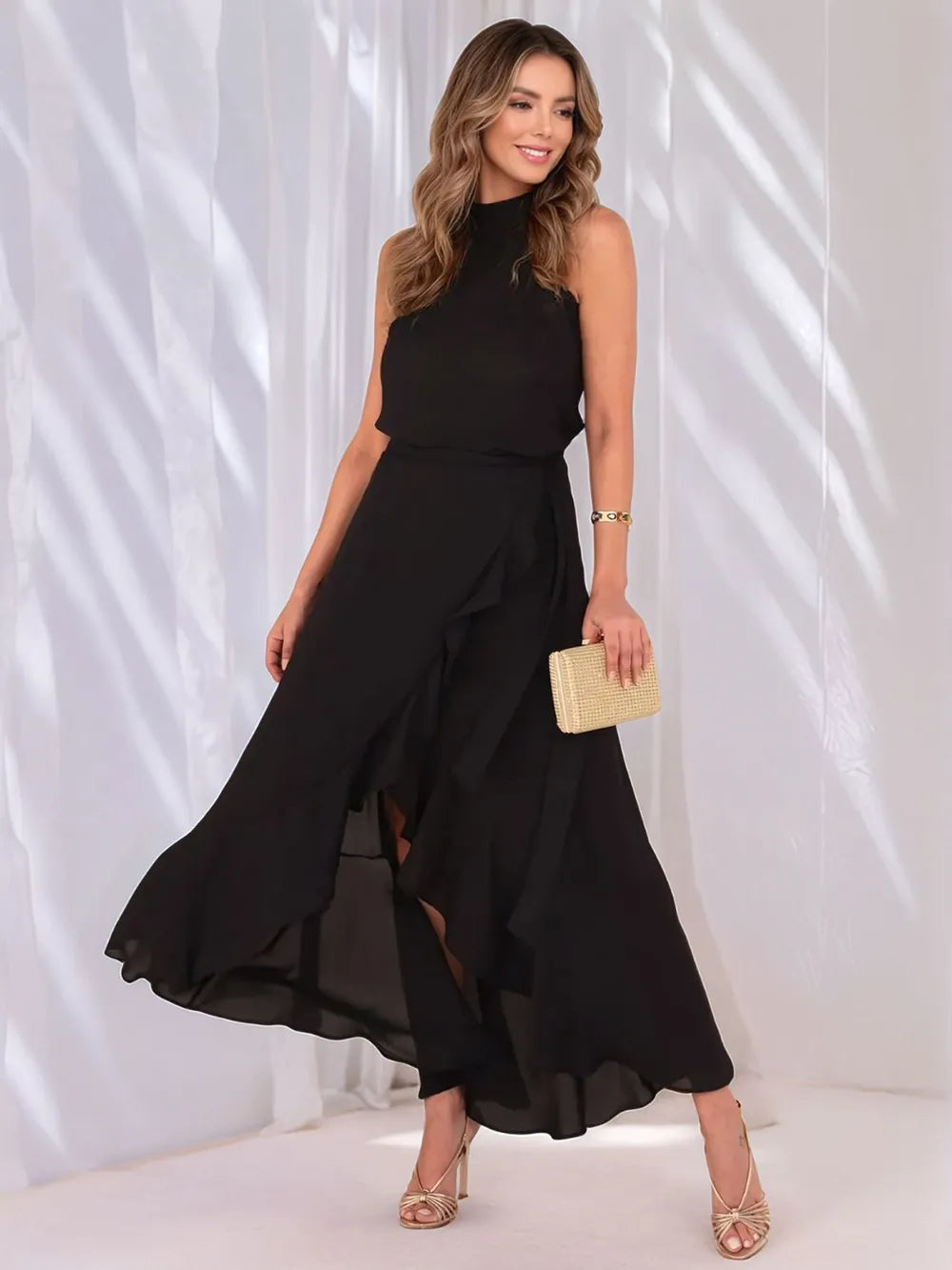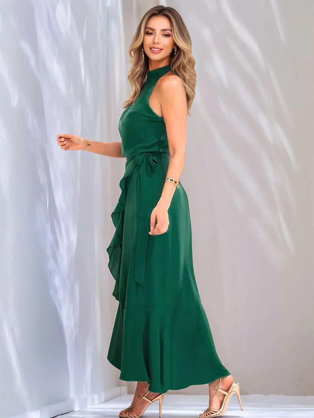 Ruffled Grecian Neck Maxi Dress