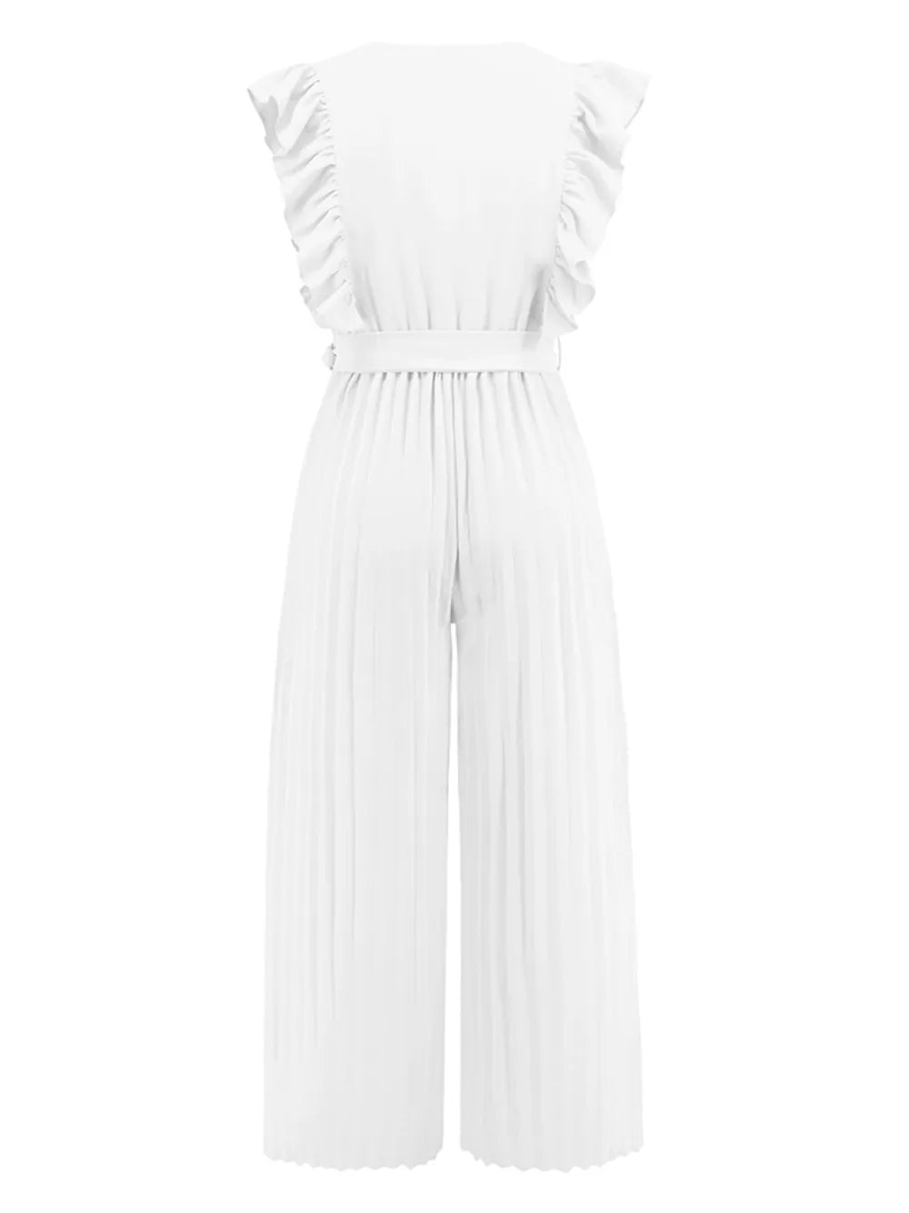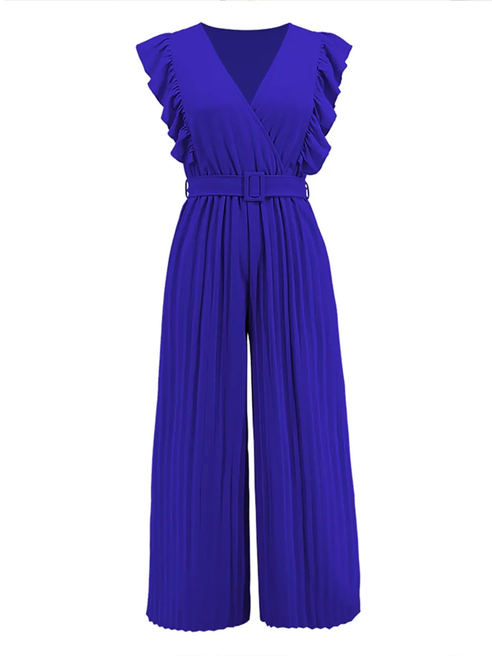 Ruffled Surplice Cap Sleeve Jumpsuit