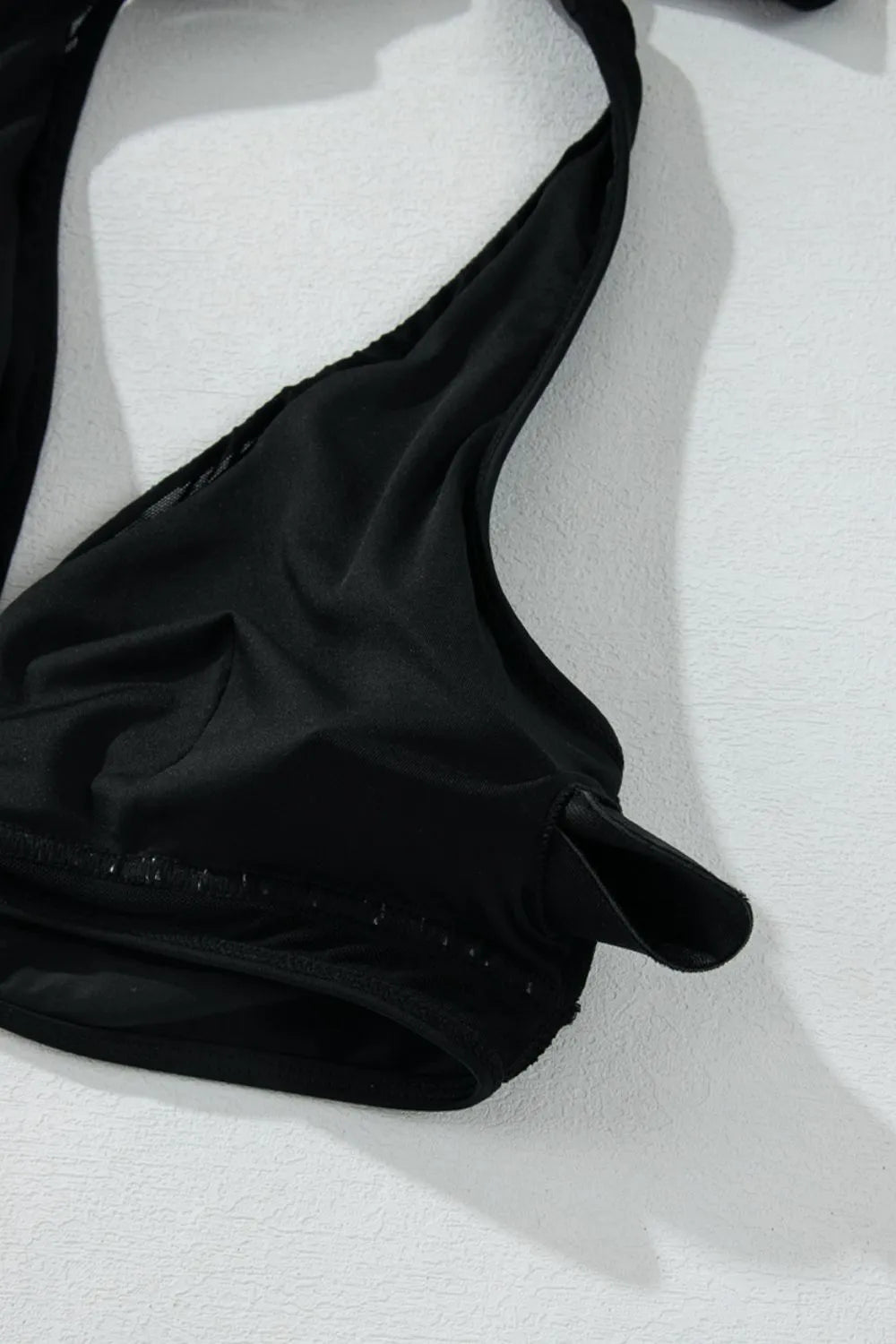 Sheer Mesh Edged Halter V Neck Push Up Bikini Set