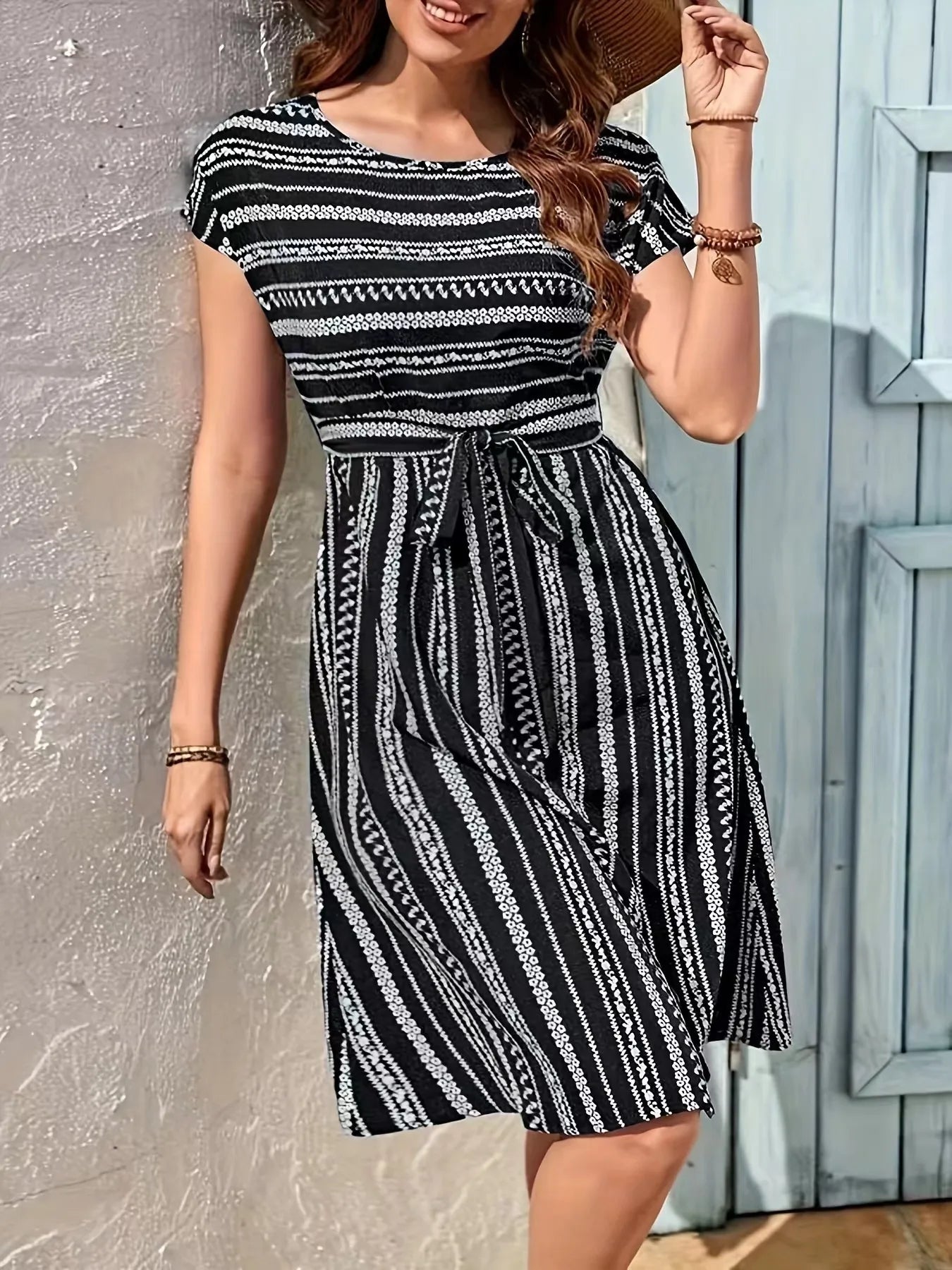 Home/All/Striped Round Neck Short Sleeve Casual Dress