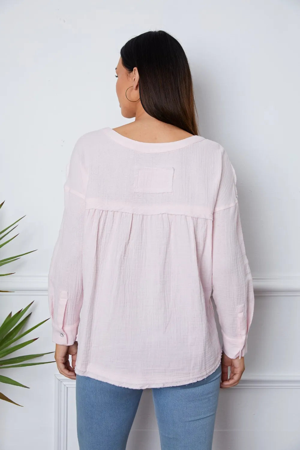 Home/All/Texture Half Button Raw Hem Top