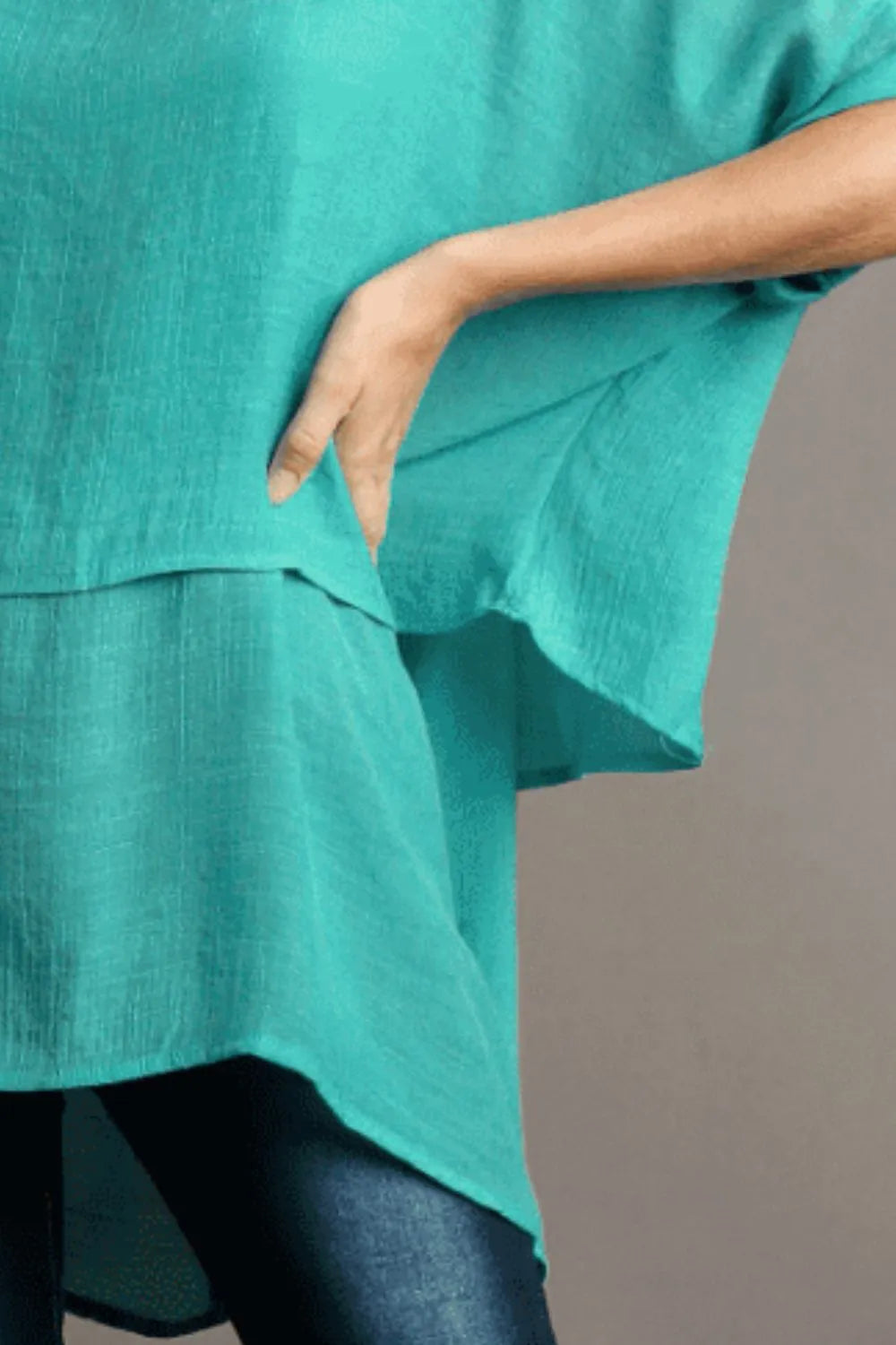 This cuffed 1/2 sleeve layered tunic offers a casual and contemporary style. The layered design adds a modern twist to the classic tunic silhouette. Perfect for a relaxed yet chic look, this tunic is versatile and can be easily dressed up or down for various occasions.