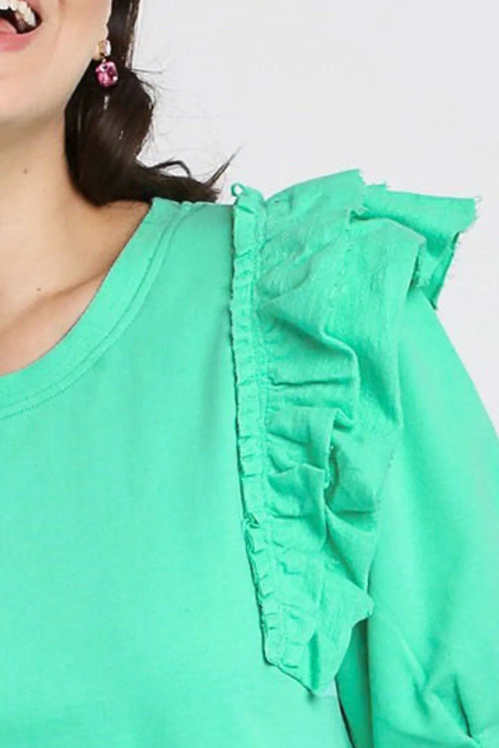 Umgee Full Size French Terry Ruffles Sleeve with Pleats Plus Size