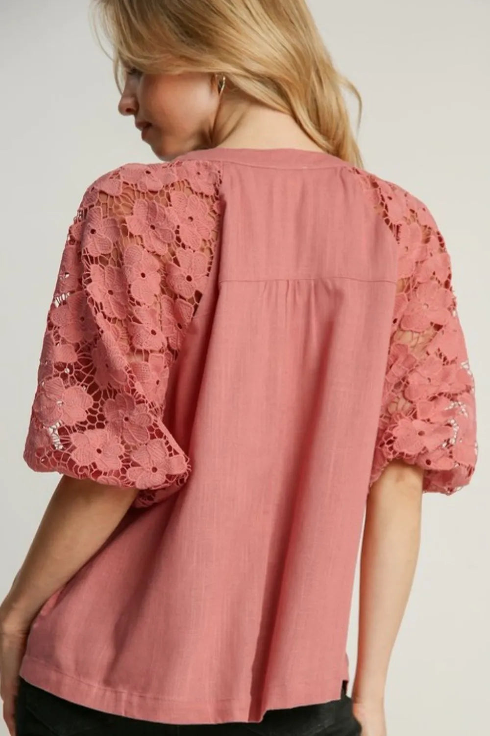 Umgee Full Size Lace Puff Sleeve Top Plus Size