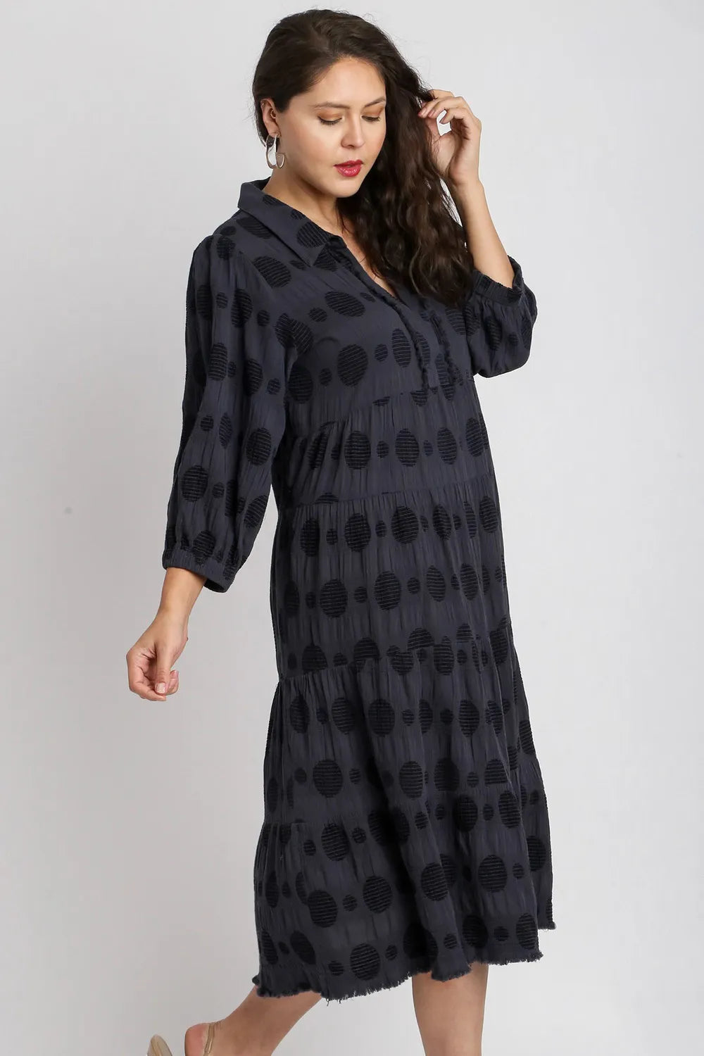 Umgee Full Size Solid Dotted Jacquard Midi Dress Plus Size