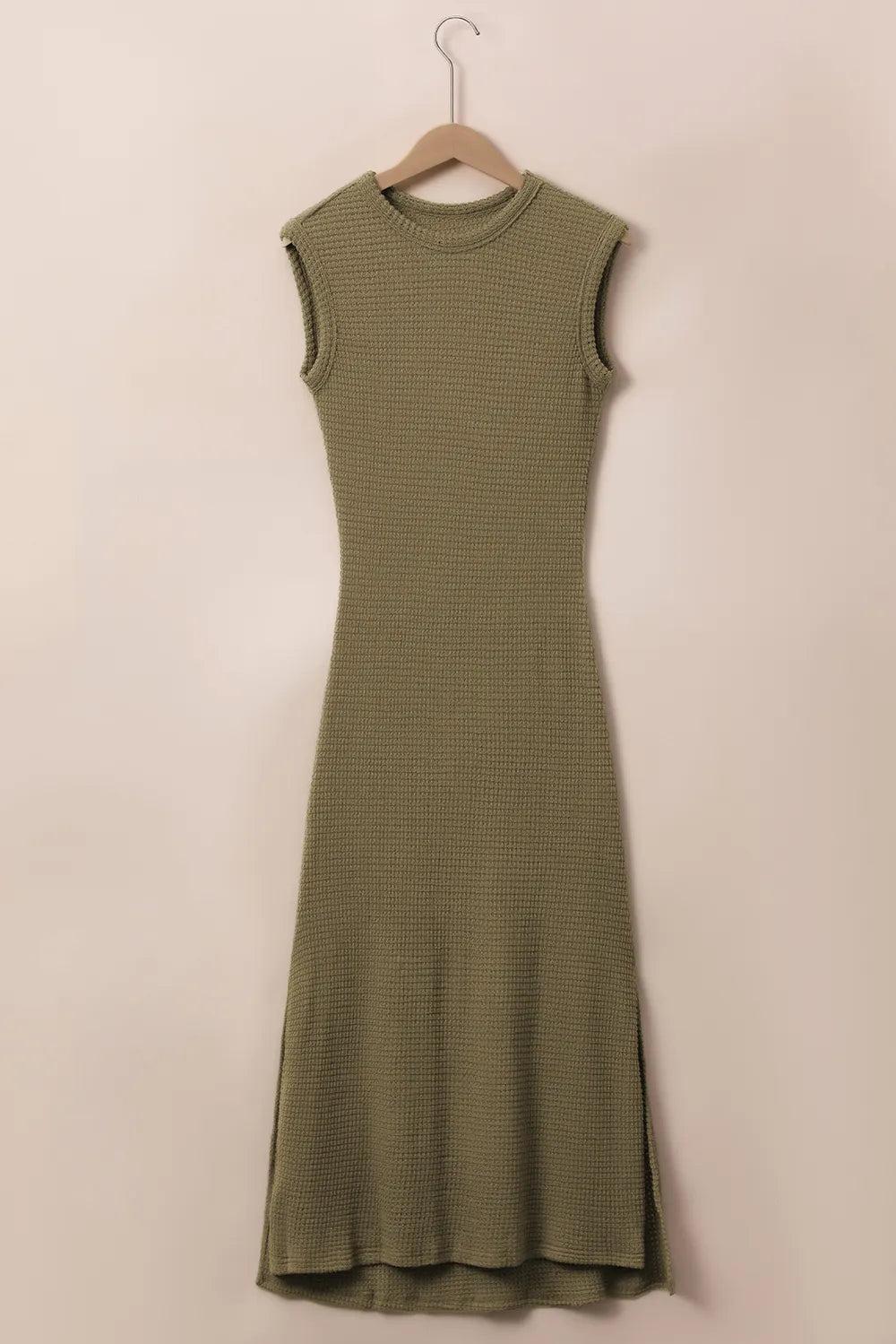 Home/All/Waffle-Knit Slit Sleeveless Maxi Dress