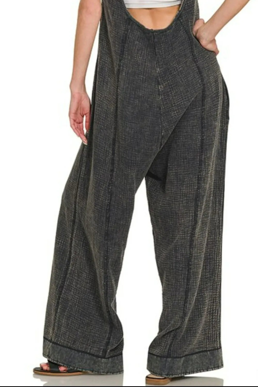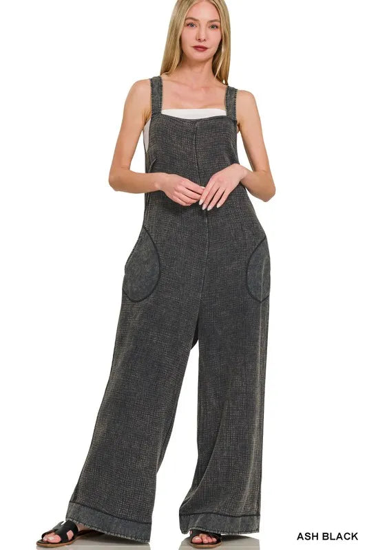 Home/All/Zenana Double Gauze Washed Wide Leg Overalls