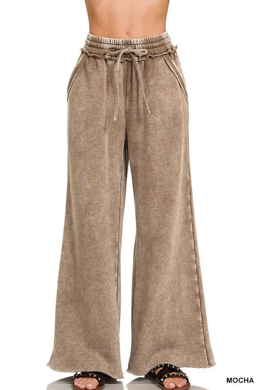 Zenana Full Size Acid Wash Fleece Palazzo Sweatpants with Pockets Plus SIze