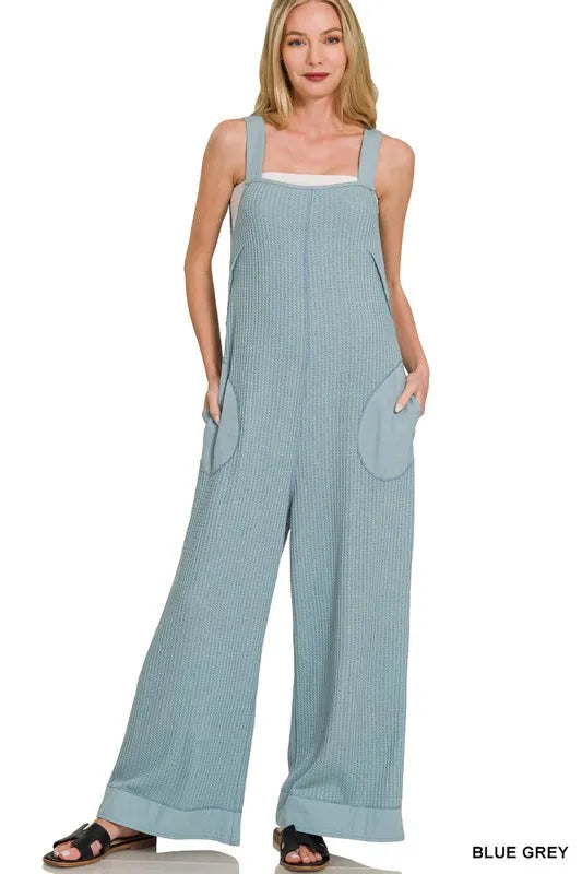 Home/All/Zenana Knit Waffle Wide Leg Overalls