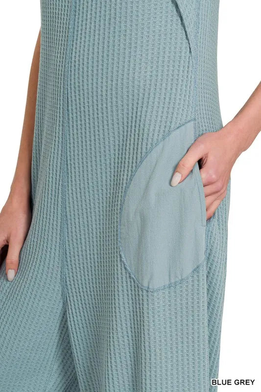 Zenana Knit Waffle Wide Leg Overalls
